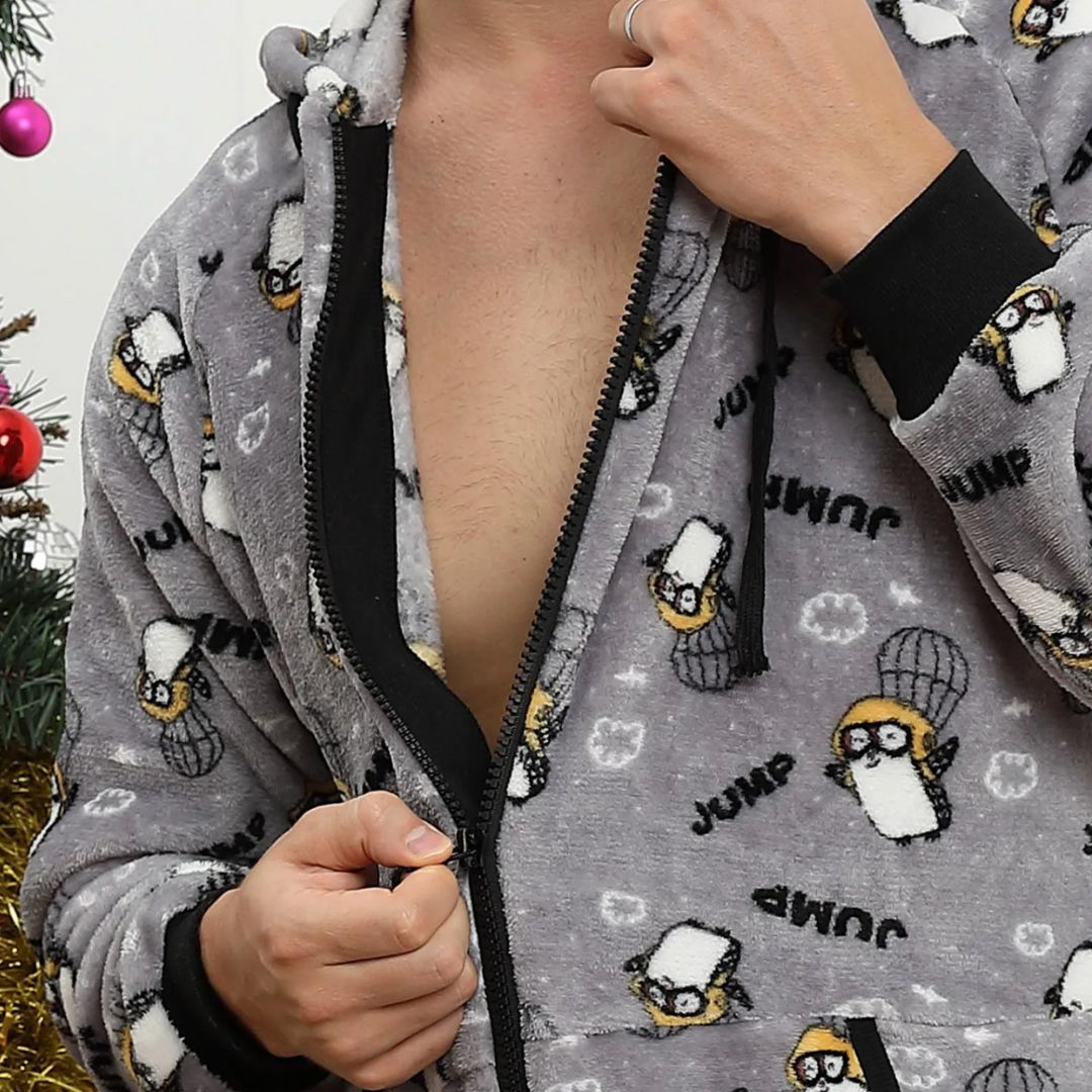 La grenouillère polaire homme grise avec motif pingouin combine parfaitement le confort décontracté avec une touche ludique. Idéale pour se détendre à la maison ou pour une soirée pyjama amusante, cette grenouillère offre à la fois la chaleur de la polaire et un design amusant avec ses motifs pingouin.
