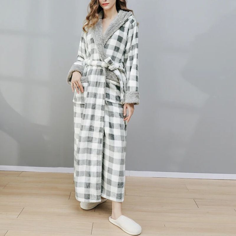 L'intérieur doublé de ce peignoir est une véritable invitation à la détente. En l'enfilant, vous serez immédiatement enveloppé d'une chaleur apaisante et d'une douceur inégalée. La polaire épouse votre corps sans le contraindre, assurant un confort optimal lors de vos moments de relaxation. Que ce soit pour les fraîches matinées où les soirées cosy, ce peignoir femme polaire à carreaux doublé en velours gris est le compagnon idéal.