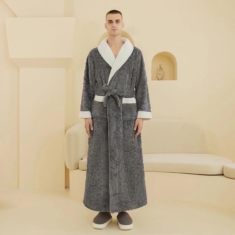 Le peignoir polaire gris avec empiècement blanc et motif floral est une fusion parfaite de l’élégance et de détails charmants. Conçu pour ceux qui apprécient le confort avec une touche d’élégance, ce peignoir est idéal pour les moments de détente, offrant chaleur tout en arborant un style raffiné.