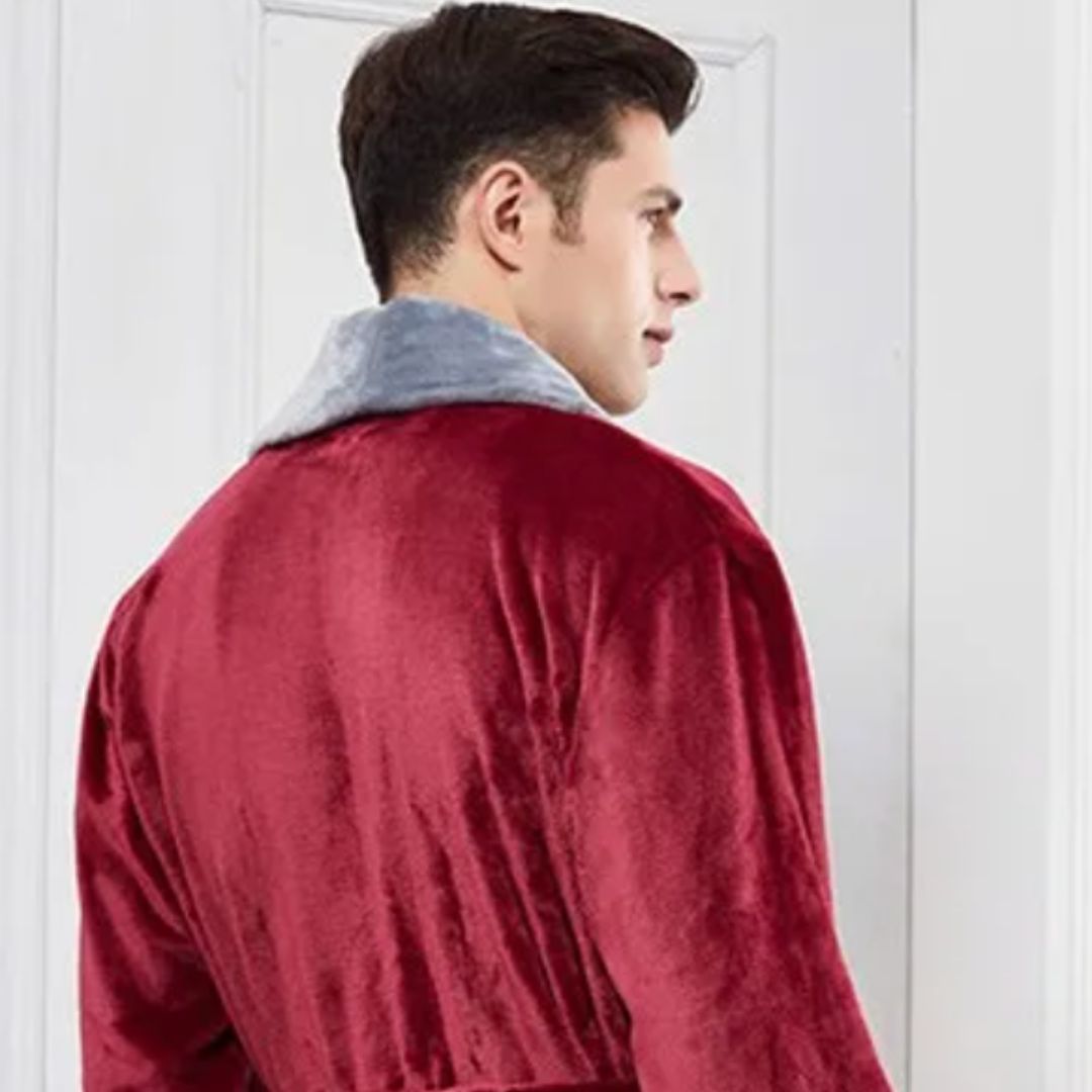 Ce peignoir se distingue par sa couleur rouge vibrante, apportant une énergie et une chaleur visuelles. Le col gris crée un contraste subtil et sophistiqué, ajoutant une dimension de raffinement au design. Cette combinaison de couleurs en fait un choix attrayant pour ceux qui apprécient les détails élégants dans leurs vêtements de détente.