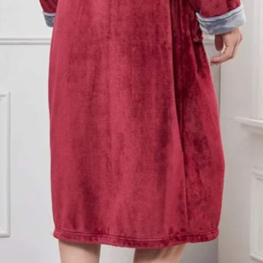 Le peignoir polaire rouge avec col gris offre une combinaison élégante de chaleur et de style. Idéal pour ceux qui cherchent à ajouter une touche de couleur et d’élégance à leurs moments de détente, ce peignoir est parfait pour se blottir confortablement à la maison, offrant une isolation douillette.