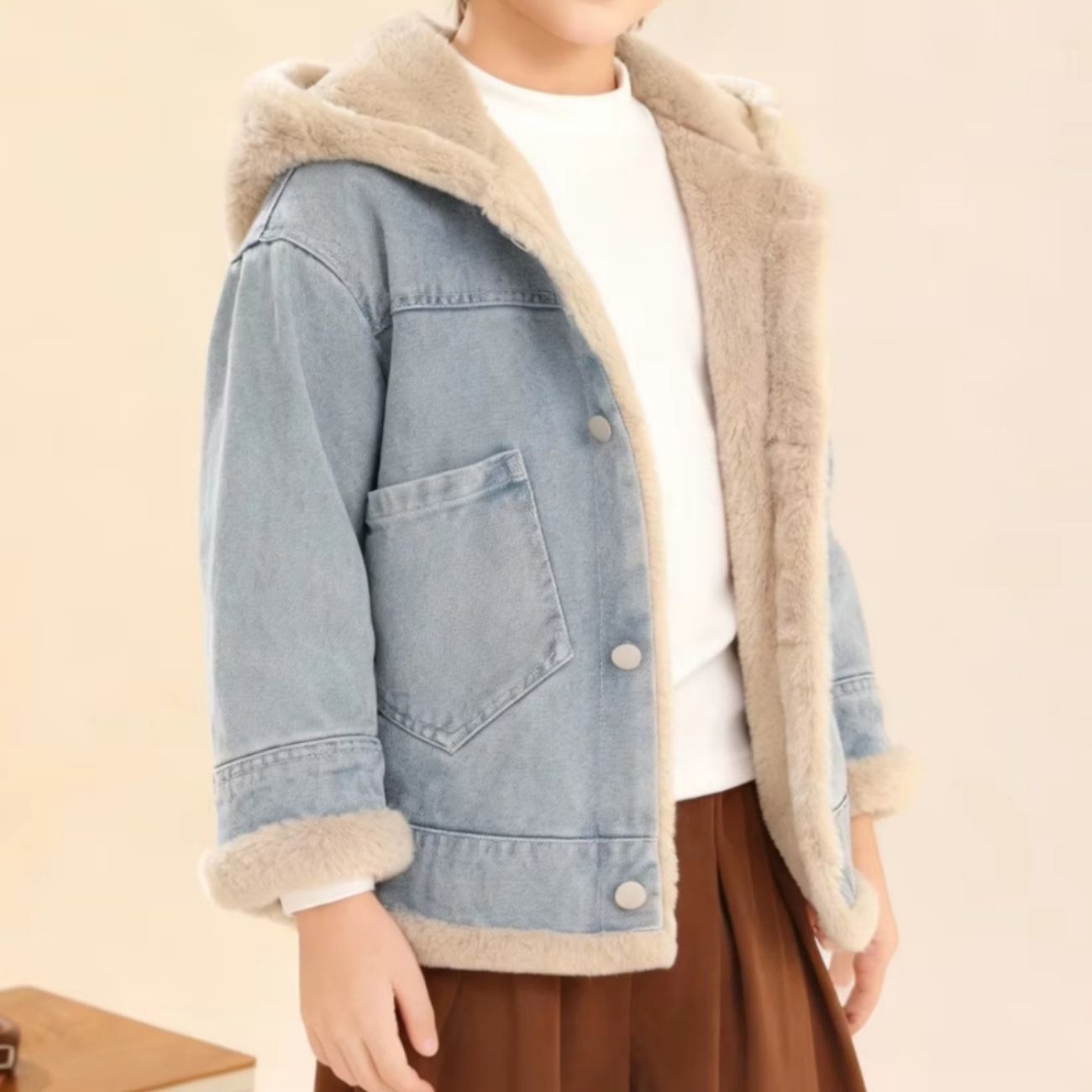 Pensée pour les journées fraîches, la polaire enfant doublée en jean associe une base douce en polyester à une doublure inspirée du denim, créant un contraste original. Sa teinte bleu ciel apporte une touche lumineuse et moderne. La capuche ajoute une protection appréciable.
