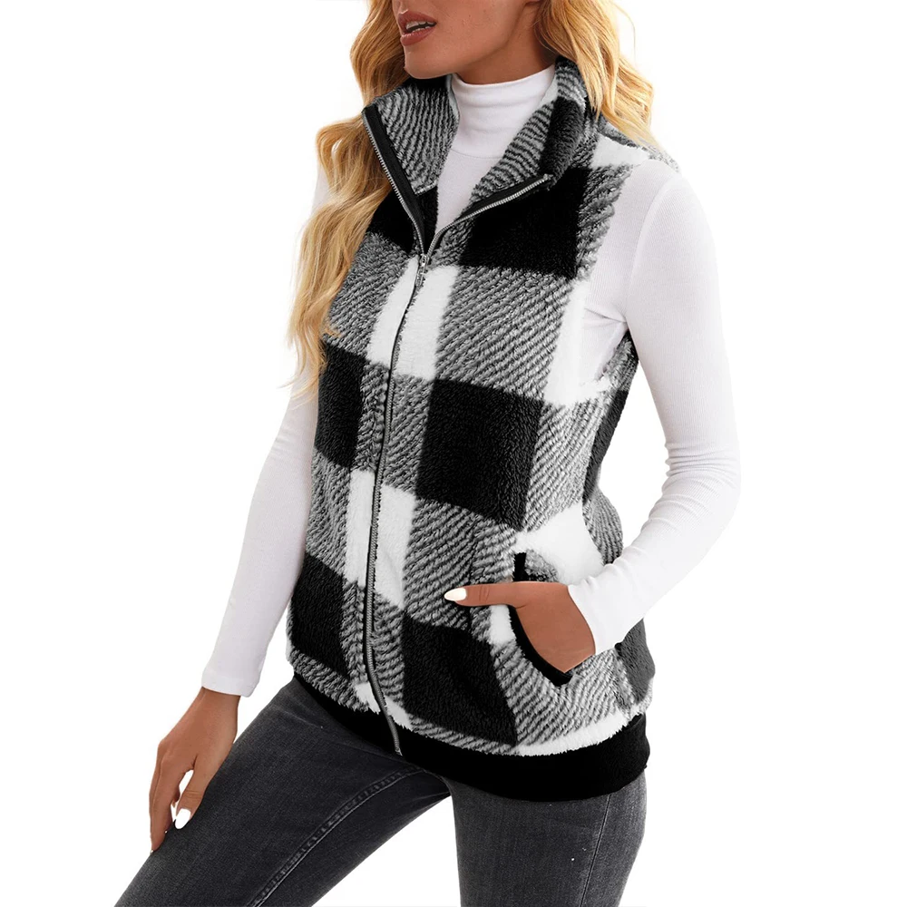 Veste polaire sans manches pour femme noire et blanche au style vintage