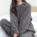 Ce pyjama polaire femme chaud à col rond allie confort et style. Disponible en trois couleurs apaisantes, il est parfait pour se détendre à la maison. Son haut à col rond et son pantalon offrent une liberté de mouvement, alors que la douceur du tissu assure une nuit paisible.