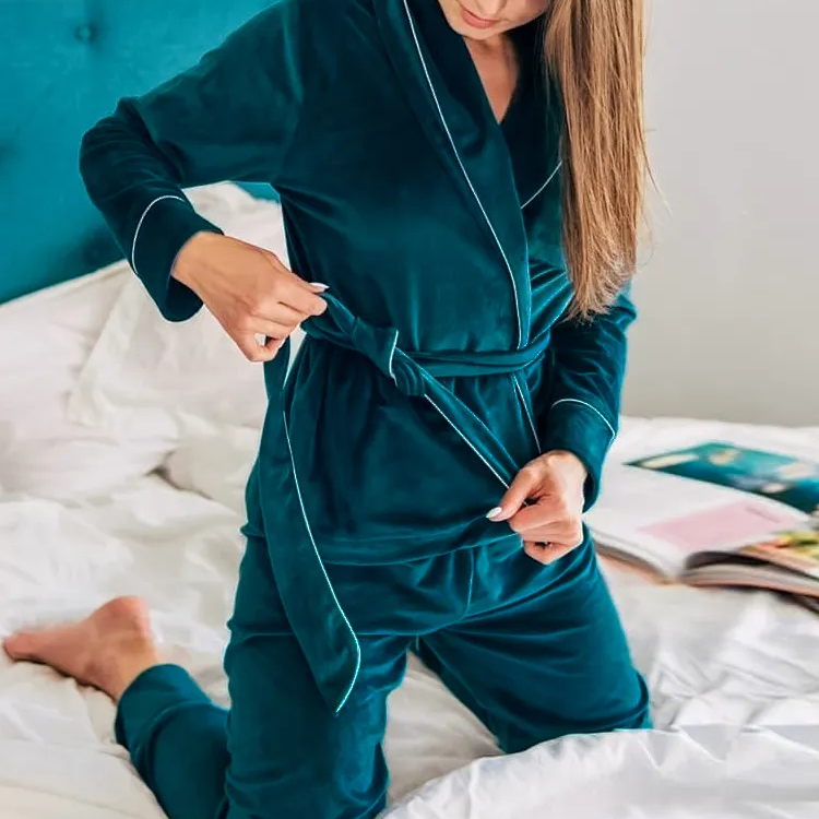 Pyjama polaire femme de style peignoir avec ceinture en velours