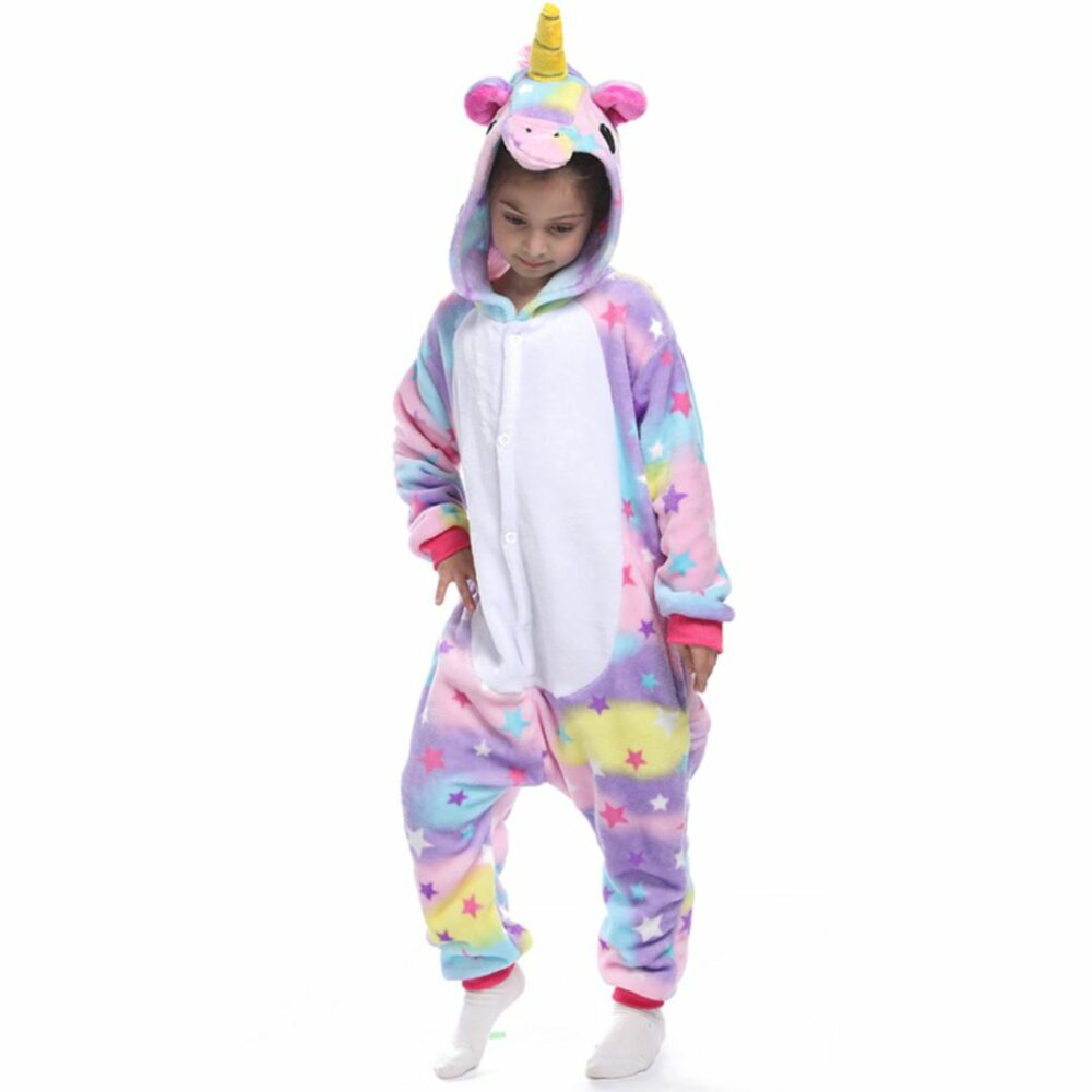 Pyjama polaire fille combinaison licorne arc-en-ciel étoilé