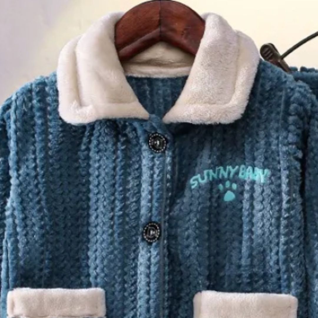 Le pyjama polaire garçon épais en flanelle bleu à motif est la parfaite alliance entre confort et style pour les nuits froides. Ce pyjama, confectionné en flanelle épaisse, offre à votre petit garçon une chaleur douce et un confort inégalé, idéal pour l’heure du coucher.