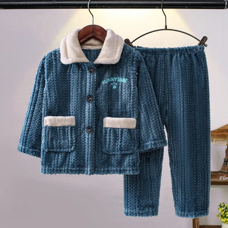 Pyjama polaire garçon épais en flanelle bleu à motif