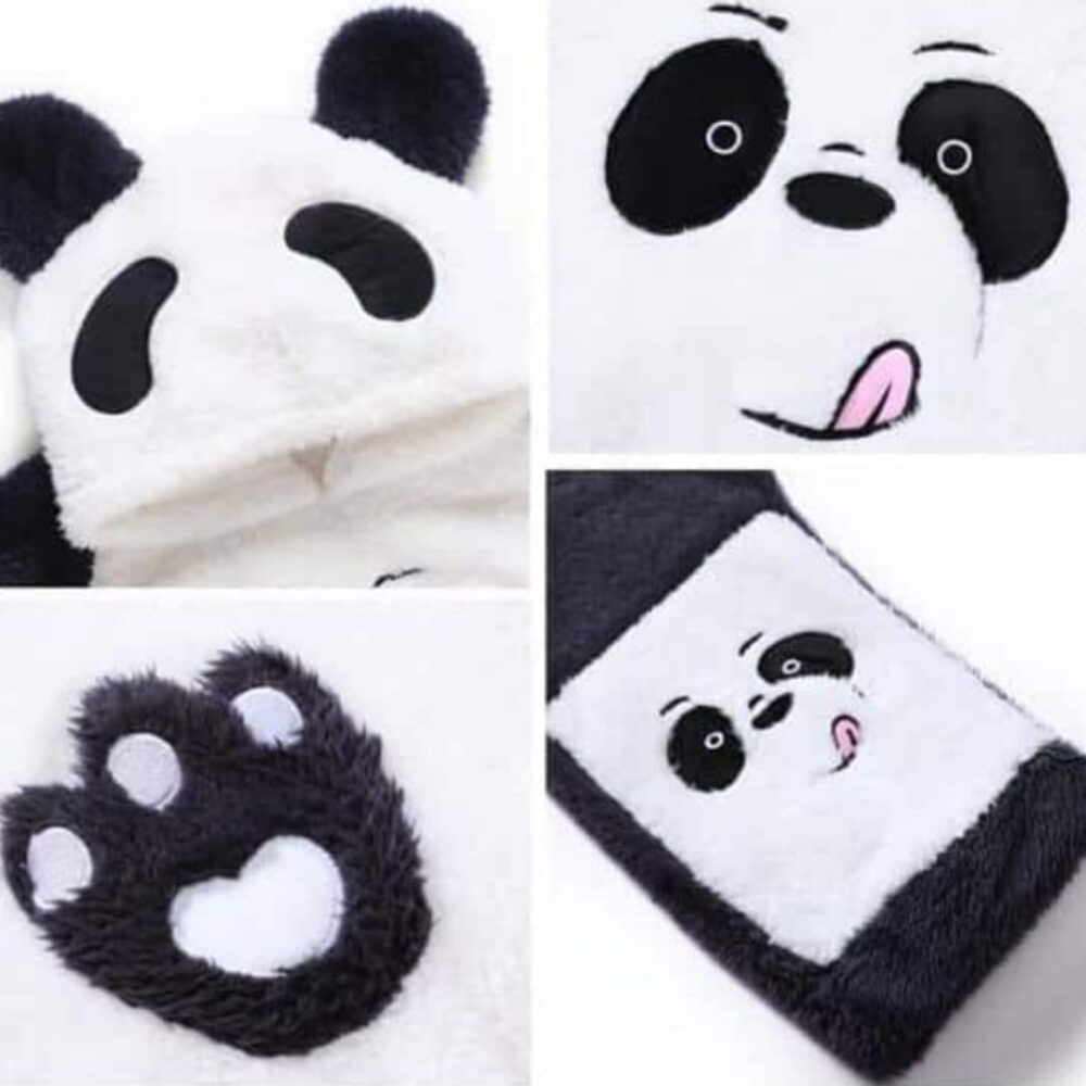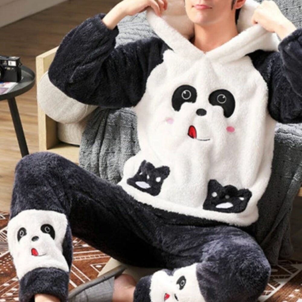 Pyjama polaire homme panda noir et blanc avec capuche
